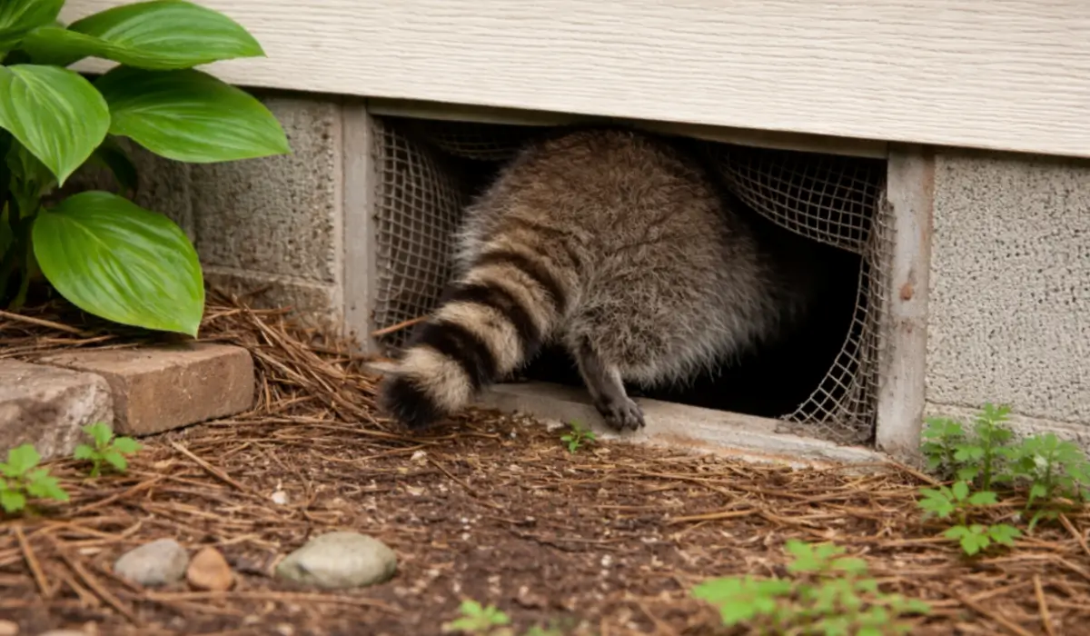 Property owners often schedule a raccoon removal service after technicians confirm raccoon activity inside lower structural spaces connected to crawlspaces or foundation gaps.